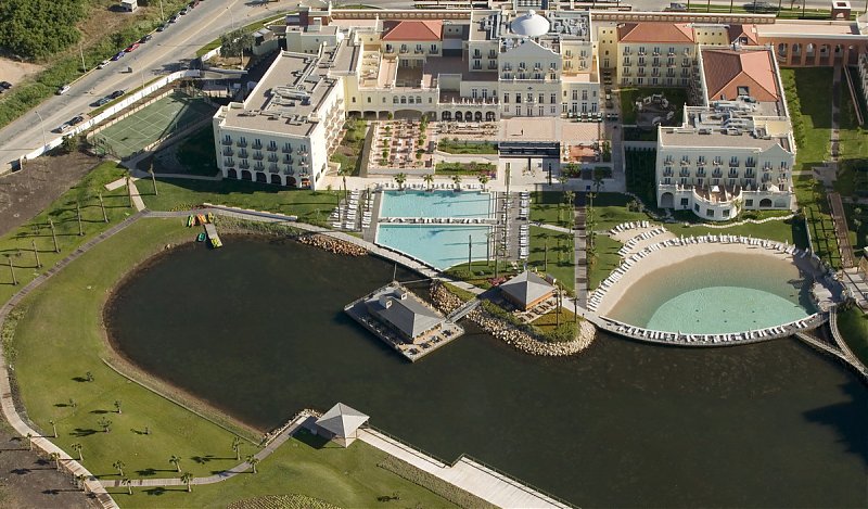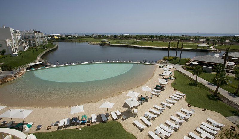 Spa with several treatment rooms, beauty rooms, relaxation areas, a sauna and a Turkish bath, an indoor treatment pool and a gym. Kids Club and babysitting service. 2 Restaurants and 2 Bars. Library and reading room. Games Room. Meeting and conference rooms. Underground parking. 24 hour Room Service. Internet Access in the Library, Wi-Fi Internet in the resort. Shuttle service to the golf courses. Gardens with wooden walkways in a conservation zone surrounding the resort’s private saltwater lake. Gardens framed and decorated with plants, shrubs and trees from the five continents, filling the scenery with colour and scent. Medical Services. Laundry Services.