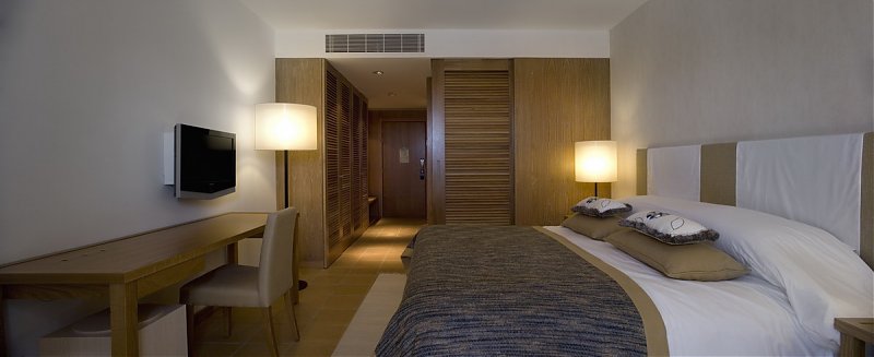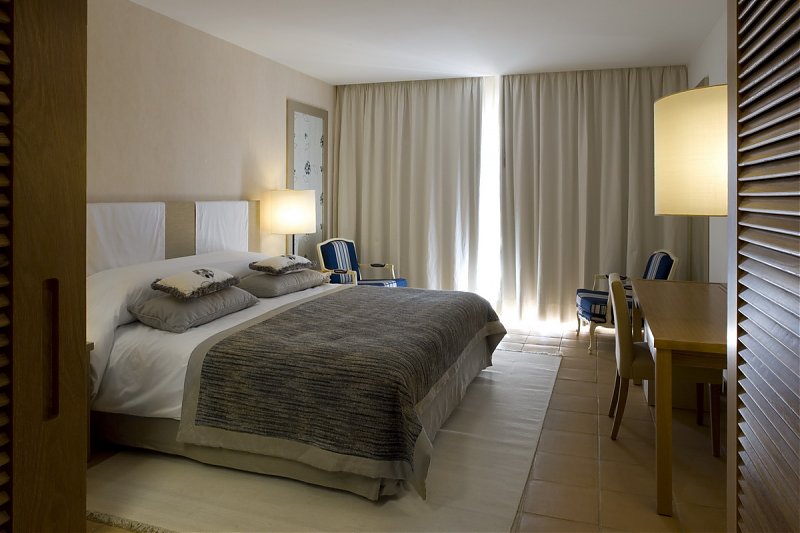 An elegant 32 m2 room furnished with one or two very comfortable large beds, decorated in shades of white and blue with Mediterranean style accessories. The bathroom, with a separate bathtub and shower, was conceived as an extension of the room itself, providing a sense of spaciousness to these two spaces separated by light-wood sliding doors. The room’s balcony offers a panoramic view over the sea, the gardens, the swimming pool and the resort’s private lake.