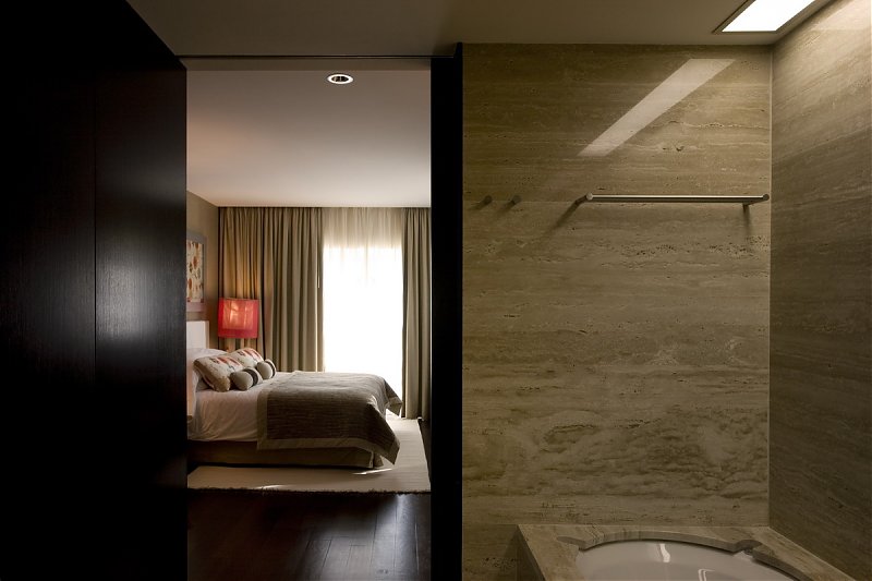 This elegant suite is furnished with a comfortable double bed and the main bathroom, with a separate bathtub and shower, was conceived as an extension of the room itself, providing a sense of openness to these two spaces separated by light-wood sliding doors. The living room has oriental style decorative elements and includes a sofa bed and an additional bathroom with shower.